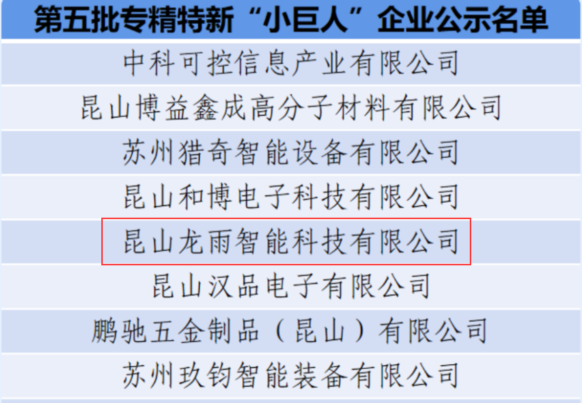 龍雨智能成功獲得國家級專精特新“小巨人”稱號
